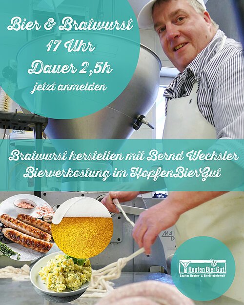 Anschließend genießt Du Dein Werk mit Kraut, Brot oder Kartoffelsalat und einer exklusiven Bierverkostung durch unsere Biersommeliers.