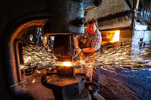Im Historischen Eisenhammer zeigen wir alte Handwerkstechnik - Im Herrenhaus aus dem Jahr 1699 wird das Leben des Hammerschmiedemeisters Fritz Schäff dokumentiert.