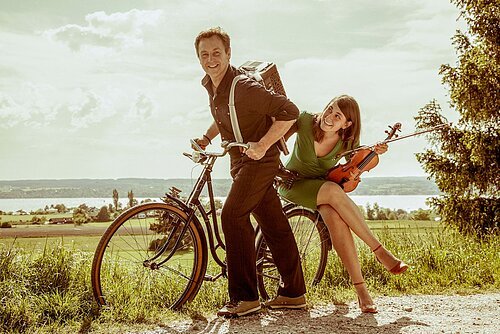 Groovig, spritzig, frech präsentieren die beiden Vollblutmusiker Marie-Josefin Melchior (Geige, E-Geige, Gitarre, Gesang) und Johann Zeller (Akkordeon, Flügelhorn, Gesang) eine erstaunliche Bandbreite an konzertanter Weltmusik: Feuriger ungarischer Czardas, rassiger Tango, Swing, Klezmer, verträumter Valse Musette…. Geschickt kombiniert mit kabarettistischen Liedern und Couplets werden Eigenkompositionen und Werke von Brahms bis Piazzolla zum frisch servierten Ohrenschmaus.
