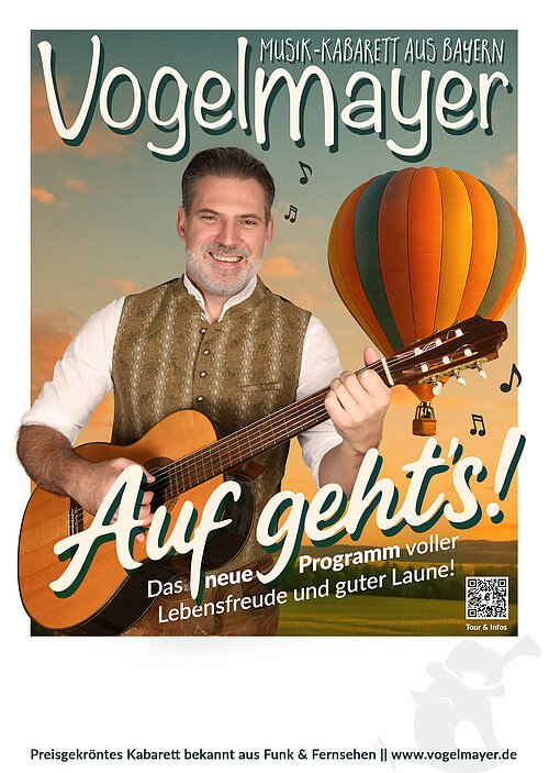 Der bayrische Musikkabarettist Vogelmayer ist zurück - mit seinem neuen Programm "Lebensfreude" bringt er genau das auf die Bühne, was wir alle brauchen. Humor, Herz und eine große Portion Lebenslust!