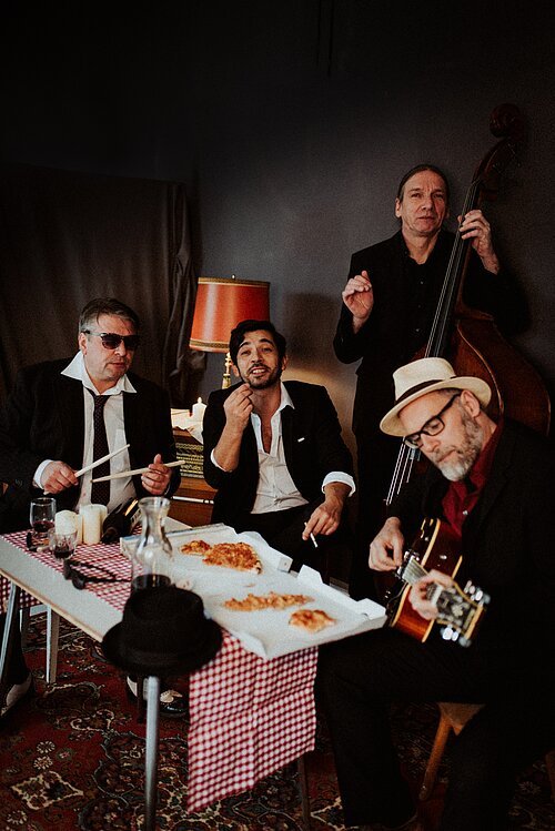 Ganz im Stil dieser Zeit bringt das Quartetto Corleone mit Giovanni Santoro an der Gitarre, Harry Vederci am Kontrabass und Gioacchino Schmidt am Schlagzeug dieses Flair auf die Bühne zurück.