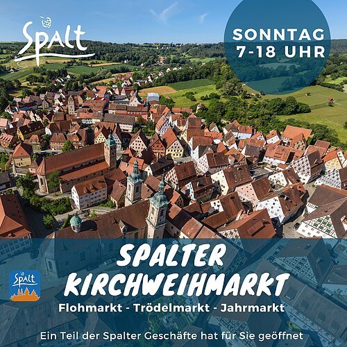 Finden oder Verkaufen Sie von 07.00 Uhr bis 18.00 Uhr Ihre gebrauchten Schätze direkt unter freien Himmel in der schönen, historischen Spalter Innenstadt. Zusätzlich bieten Fahrgeschäfte Spaß für die Kleinsten.