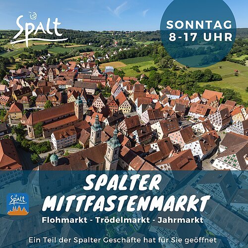 Finden oder Verkaufen Sie von 08.00 Uhr bis 17.00 Uhr Ihre gebrauchten Schätze direkt unter freien Himmel in der schönen, historischen Spalter Innenstadt.